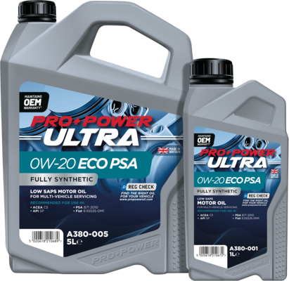 Pro Power Ultra 0W-20 ECO PSA is a fully synthetic low SAPS, fuel efficient motor oil. Recommended for certain modern engines produced by Stellantis/PSA requiring a lubricant to a PSA B71 2010 specification. Ideally suited to many modern hybrid engine vehicles.