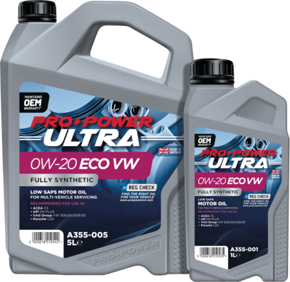 Pro Power Ultra 0W-20 ECO VW is a fully synthetic low SAPS, fuel efficient motor oil suitable for use in both petrol and diesel engine, designed to give reductions in fuel consumption and excellent protection during cold start up. Recommended for many modern vehicles, including those from Audi, VW, Skoda, Seat and Porsche.