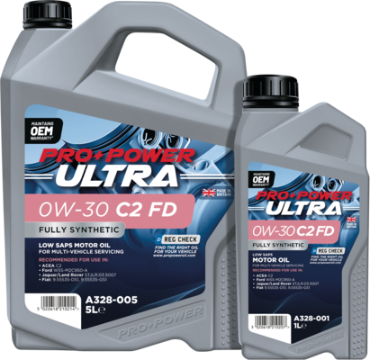 Pro Power Ultra 0W-30 C2 FD is a fully synthetic, low SAPS, fuel efficient motor oil suitable for use in diesel engines. It is designed to give maximum protection to diesel particulate filters (DPF). Recommended for many modern vehicles, including those from Ford with EcoBlue Diesel engines.