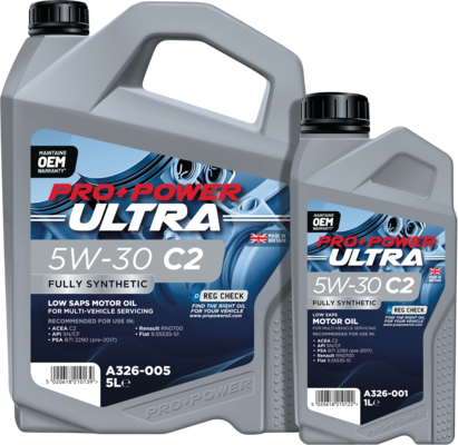 Pro Power Ultra 5W-30 C2 is a fully synthetic, low SAPS, fuel efficient motor oil suitable for use in both petrol and diesel engines. It is designed to give maximum protection to diesel particulate filters (DPF's). Recommended for many modern vehicles, including those from