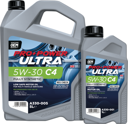 Pro Power Ultra 5W-30 C4 is a fully synthetic, low SAPS, fuel efficient motor oil suitable for use in both petrol and diesel engines. It is designed to give maximum protection to diesel particulate filters (DPF). Recommended for many modern vehicles, including those from Renault and others.