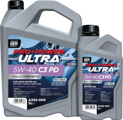 Pro Power Ultra 5W-40 C3 PD is a fully synthetic, low SAPS, fuel efficient motor oil suitable for use in both petrol and diesel engines. It is designed to give maximum protection to diesel particulate filters (DPF). Recommended for many modern vehicles, including those from Fiat,