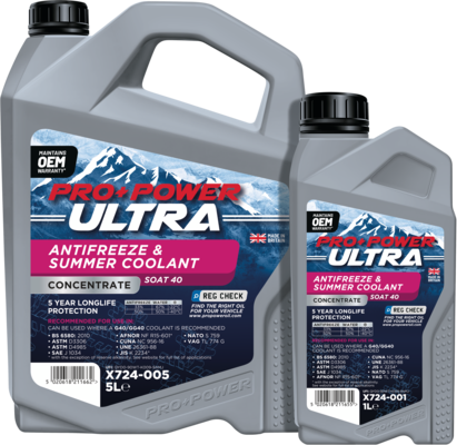 Pro Power Ultra Red Antifreeze & Summer Coolant is a long-life winter antifreeze and summer coolant, giving up to 5 years of protection. May be used where Glysantin® G12, G12+, G30, G33 or G34 products were originally recommended. Uses OAT - Organic Acid Inhibitor Technology.